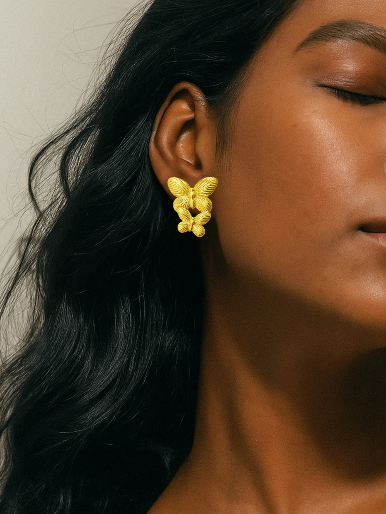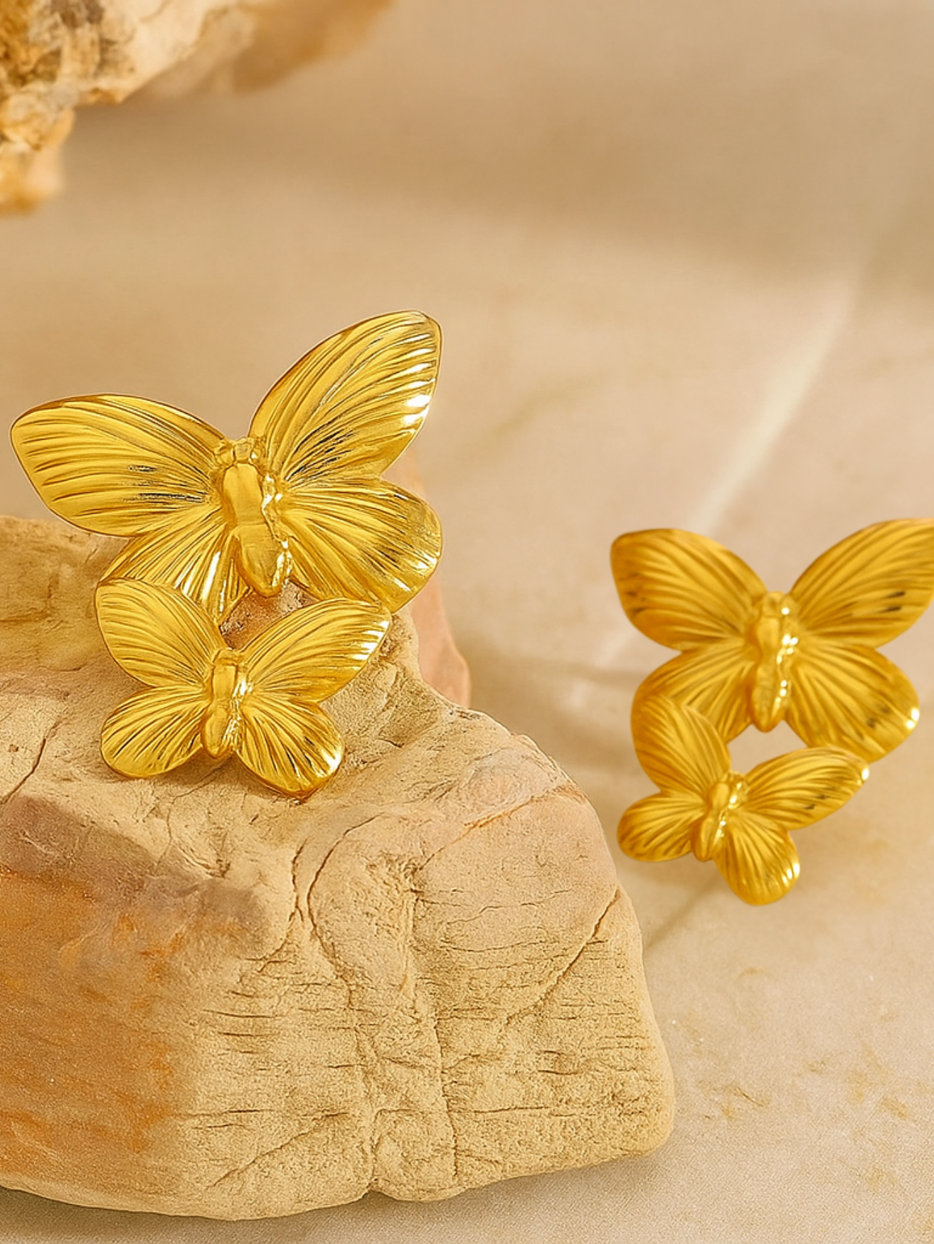 Be the first to review “Gleaming Dual Butterfly Statement Earrings – Gold Plated Elegance”